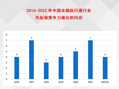 2016-2022年中国末端执行器行业为加强竞争力做出的回应 根据不完全统计,自2016年至2022年6月,中...