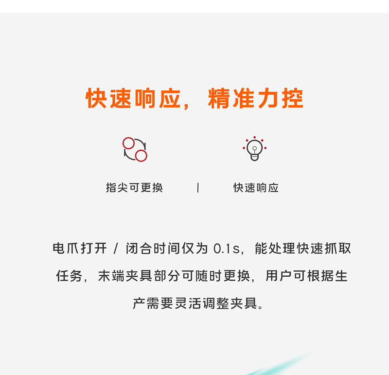 慧灵HITBOT,六轴机械臂专属电爪,行程8mm,驱控一体,参数可调,小体积安装灵活,能根据任务要求更换末端夹具,灵活调整前端夹具的使用!