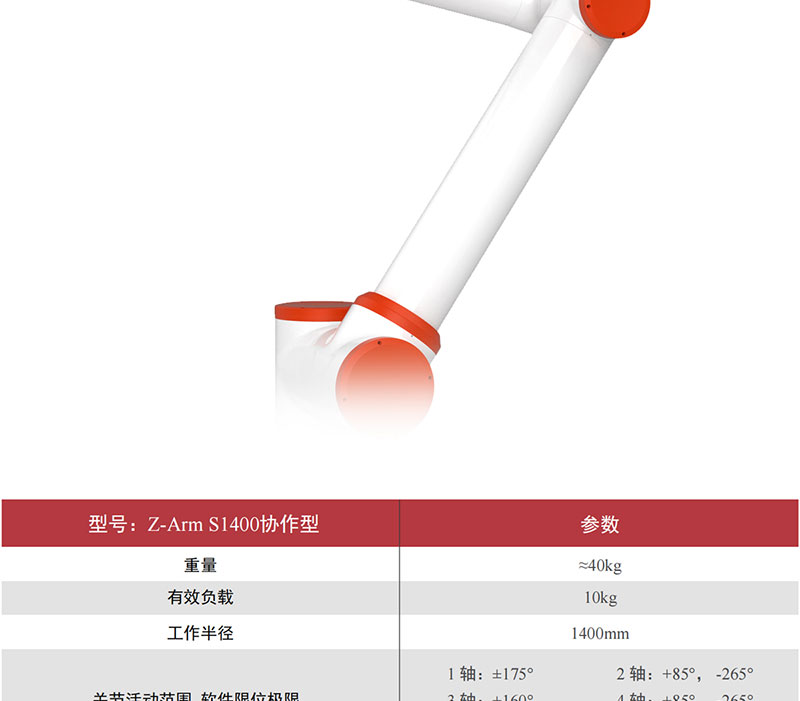 1轴:±175°; 2轴:+85°,-265°; 3轴:±160°;