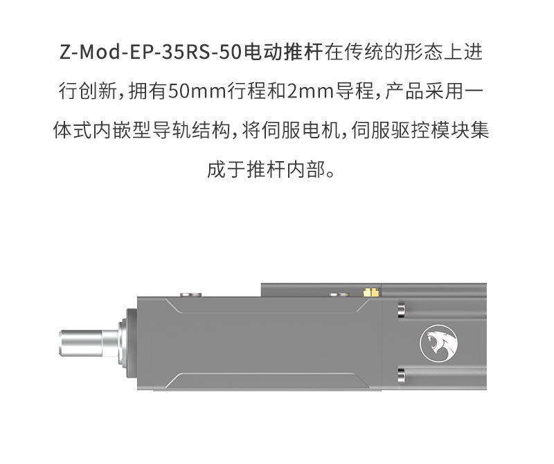 2023年1月10日 Lu, DongWu 智能电缸 0 Z-Mod-EP-35RS-50 首页 / 智能电缸 / Z-Mod-EP-35RS-50 体积小、推力大 、高精度、性价比高驱动内置,简单易操作末端抗弯能力强力、位置、速度都可以通过Modbus精准控制长寿命:千万次循环,超越气缸控制方式:485、I/O、脉冲 下载3D模型 下载产品手册 体积小、推力大 、高精度、性价比高驱动内置,简单易操作末端抗弯能力强力、位置、速度都可以通过Modbus精准控制长寿命:千万次循环,超越气缸控制方式:485、I/O、脉冲 下载3D模型 下载产品手册 产品描述 资料下载 产品描述 Z-Mod-EP-35RS-50 核心参数 1-2mm 280N 导程 最大连续推压力 50mm ±0.02mm 行程 重复定位精度 *线框尺寸图 规格参数 型号性能 行程 50mm 导程 1mm 2mm 最大速度 50mm/s 100mm/s 最大连续推压力 280 150N 最大负载质量 水平:6kg / 垂直:1.5kg 水平:3kg / 垂直:1.5kg 重复定位精度 ±0.02mm 力控精度 ±10% 推杆不旋转精度 ±1.5° 推杆末端允许力矩 1N·m 整机重 0.8kg 尺寸规格 160*40*86mm 控制方式 I/O控制、485总线控制、脉冲控制(脉冲+方向) 工作电压 DC24V±10% 额定电流 2A 峰值电流 6A 防护等级 IP40 使用环境 0~40℃,85% RH以下(不结霜) 资料下载 点击下载产品手册 点击下载3D图 点击下载运动范围图 Z-Mod-EP-35RS-50核心参数 产品详细参数 行程50mm导程1mm2mm最大速度50mm/s100mm/s最大连续推压力280N150N最大负载质量水平:6kg / 垂直:1.5kg水平:3kg / 垂直:1.5kg重复定位精度±0.02mm力控精度±10%推杆不旋转精度±1.5°推杆末端允许力矩1N·m整机重0.8kg尺寸规格160*40*86mm控制方式I/O控制、485总线控制、脉冲控制(脉冲+方向)工作电压DC24V±10%额定电流2A峰值电流6A防护等级IP40使用环境0~40℃,85% RH以下(不结霜) 产品详情 相关产品